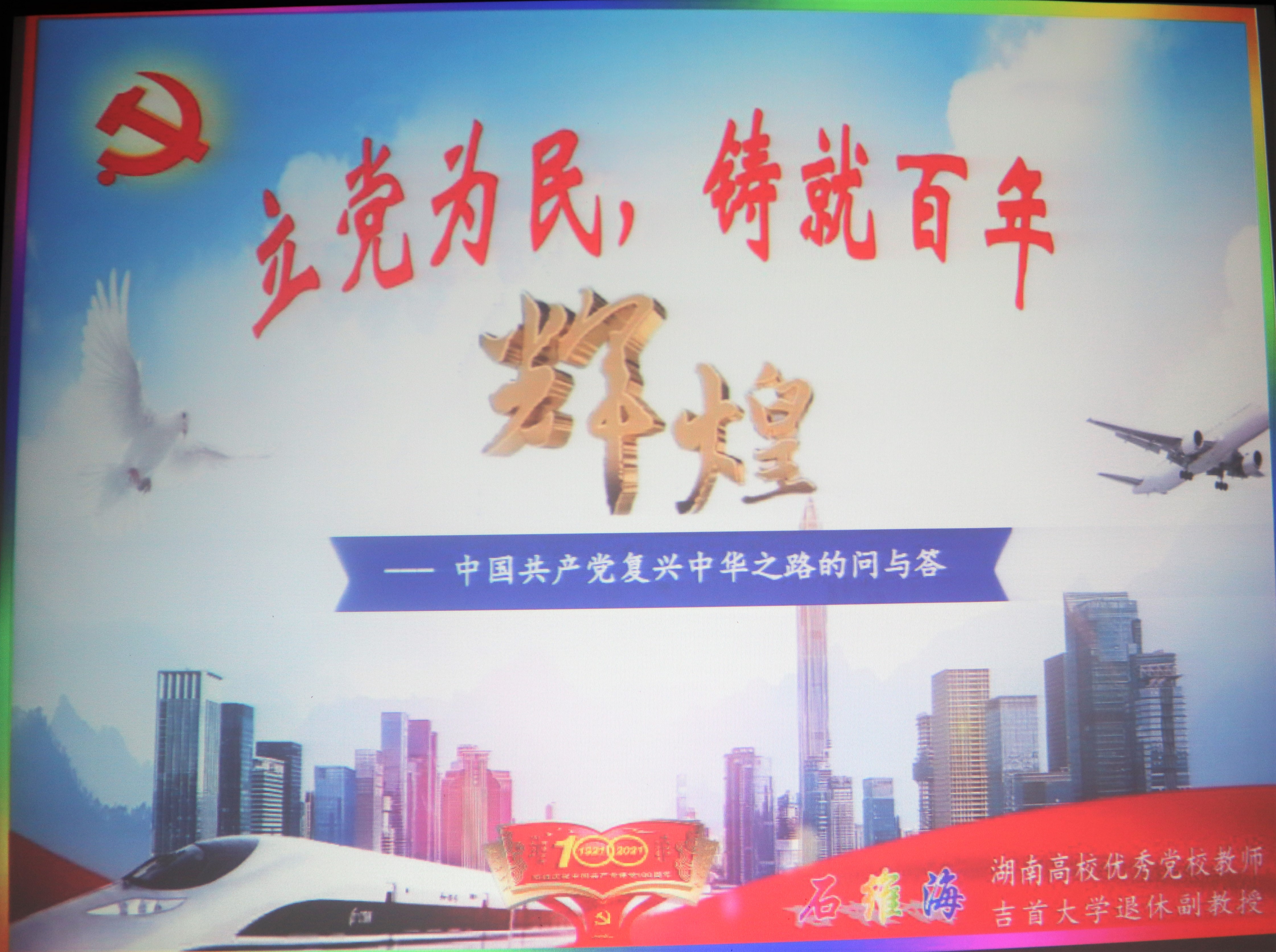 石维海以“立党为民,铸就百年辉煌”为主题,详细介绍了中国共产党自成立至今的历史,他指出党的历史是奋斗出来的,并就“中国共产党为什么行”展开论述。此后,石维海深情演唱《不忘阶级苦》一歌,表达他的老党员情怀。接着,他简要介绍了党的思想,并向观众讲述了建党以来中国的巨大变化,他要求党员弘扬“四铁”品质,积极施展八项本领。