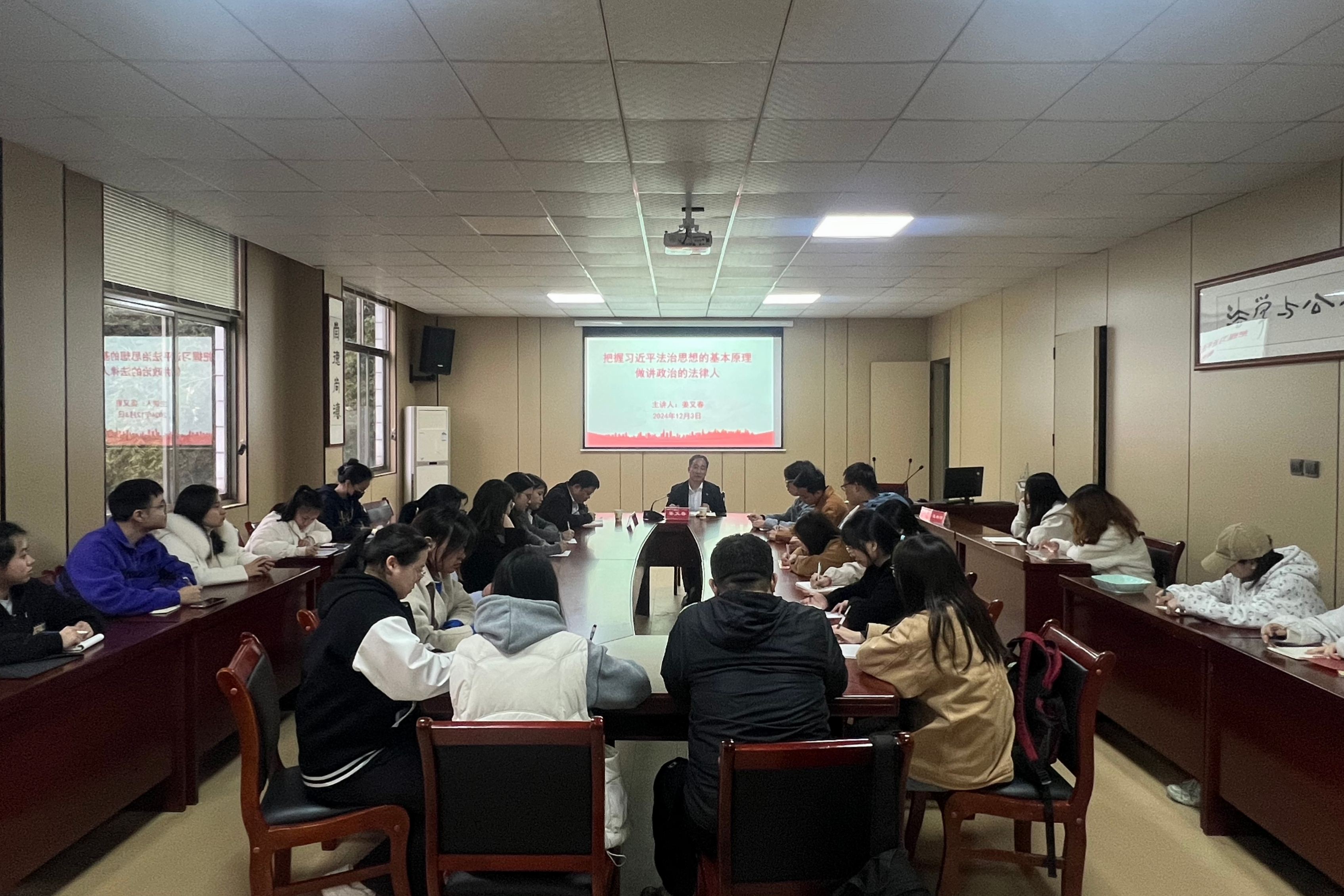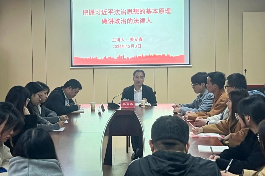2024年12月3日,为深入学习贯彻党的二十届三中全会精神,校党委委员、副校长姜又春以《把握习近平法治思想的基本原理,做讲政治的法律人》为题,为学院学生党员、入党积极分子讲授专题党课。