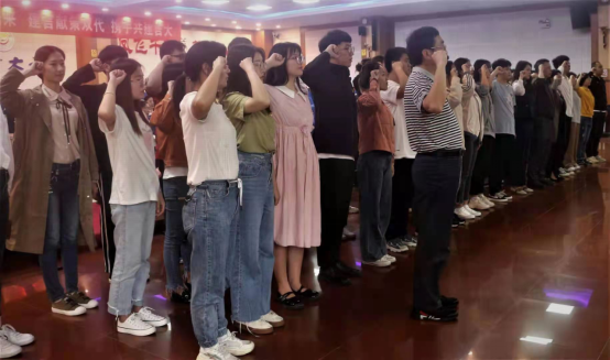 面向鲜红的党旗,由学院党委书记彭献忠领誓,全体师生党员举起右拳庄严宣誓,神情肃穆,精神饱满,语句铿锵,字字千钧。在这个神圣的时刻,每一位党员深感责任重大、使命光荣!