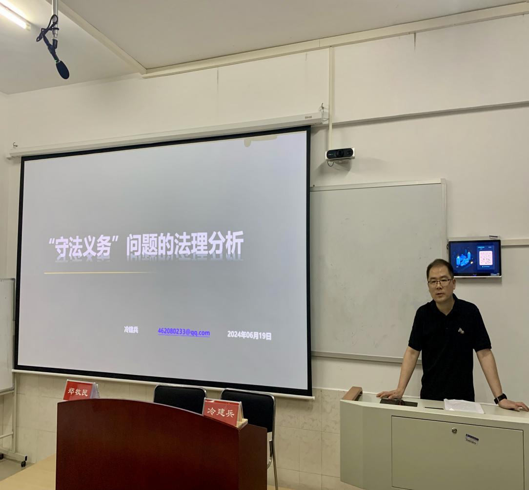 冷建兵博士以《“守法义务”问题的法理解析》为题做了专题报告,“守法义务”是公民基本权利义务关系中的重要组成部分,是公民应尽的法律义务。但在实践中,人们对“守法义务”的内涵和边界存在着不同理解,冷建兵博士将自己的研究工作与法理学部分内容相结合进行了详细阐述,与会学生认真听讲并积极沟通交流。