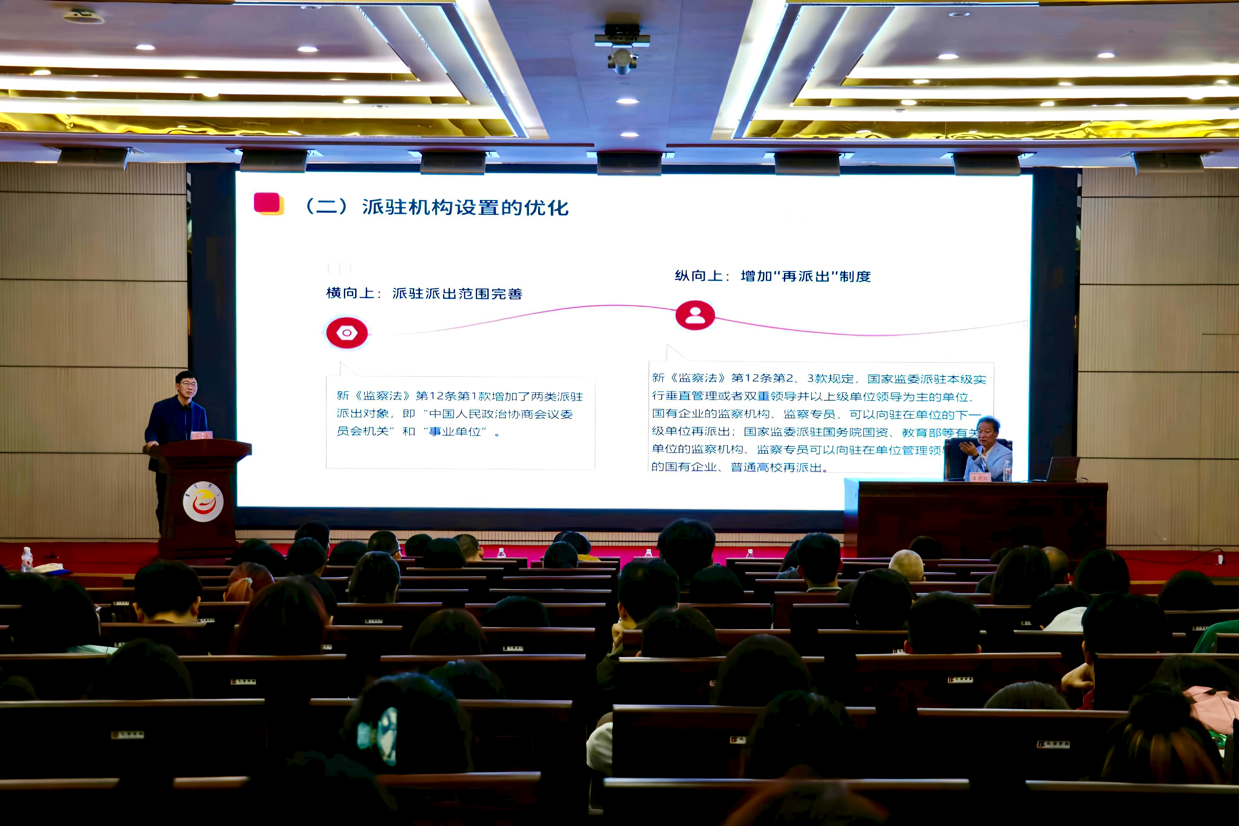 在师生热烈的掌声中,秦前红以“《监察法》三问”为逻辑主线,通过设问“监察法为何需要修改”“监察法修改了哪些关键内容”“新监察法将如何实施”等关键问题,系统剖析《监察法》修订的深层动因、核心要义及实施展望。