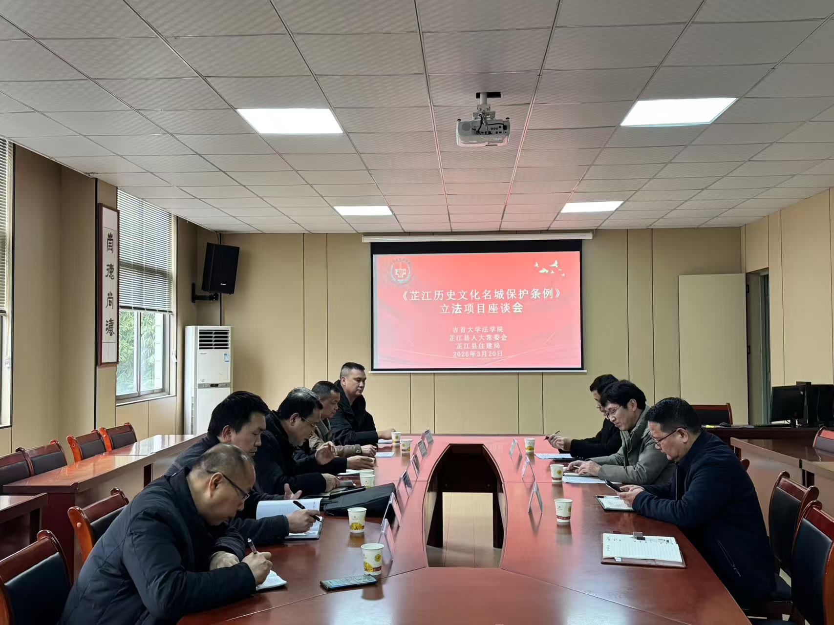 本网讯(文/谢时研 图/彭荔)2026年3月20日下午,芷江侗族自治县人大常委会党组成员、办公室主任佘振文,县人大教科文卫委(民侨外委)主任委员张中文,县人大教科文卫委(民侨外委)副主任委员李复钦,县住建局副局长马朝文,县住建局杨宜东,县人大信息服务中心唐成勇等一行莅临我院,就《芷江历史文化名城保护条例》的立法工作开展专题座谈。WilliamHill体育法学院院长郑牧民教授,法学院党委书记张旺,办公室主任彭荔,法理学教研室主任谢时研博士等参加座谈。