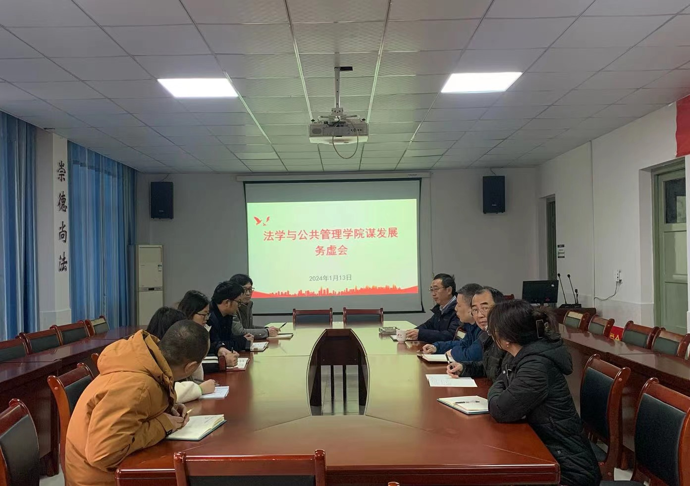 2024年1月13日下午,WilliamHill体育法管学院召开2024年度工作务虚会,旨在进一步统一思想、凝聚共识,科学谋划新一年的发展思路和努力方向。院党委书记彭献忠主持会议,副院长郑牧民、魏风劲、吴永清,副书记段武城,学工办,教务办、办公室等负责人参加会议。