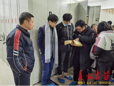 师生在工作人员的带领下详细了解档案管理知识