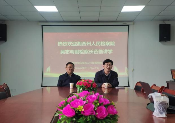 (本网讯 唐梦纯)2022年11月21日下午我院举办《刑事诉讼“三纲一书”的写作技巧》讲座,现场邀请到拥有丰富实务工作经验的原湘西州人民检察院副检察长吴志明为法律硕士的同学们进行讲解,郑牧民副院长主持。本次讲座是我校第14届研究生学术活动节的一次重要的学术探讨活动。