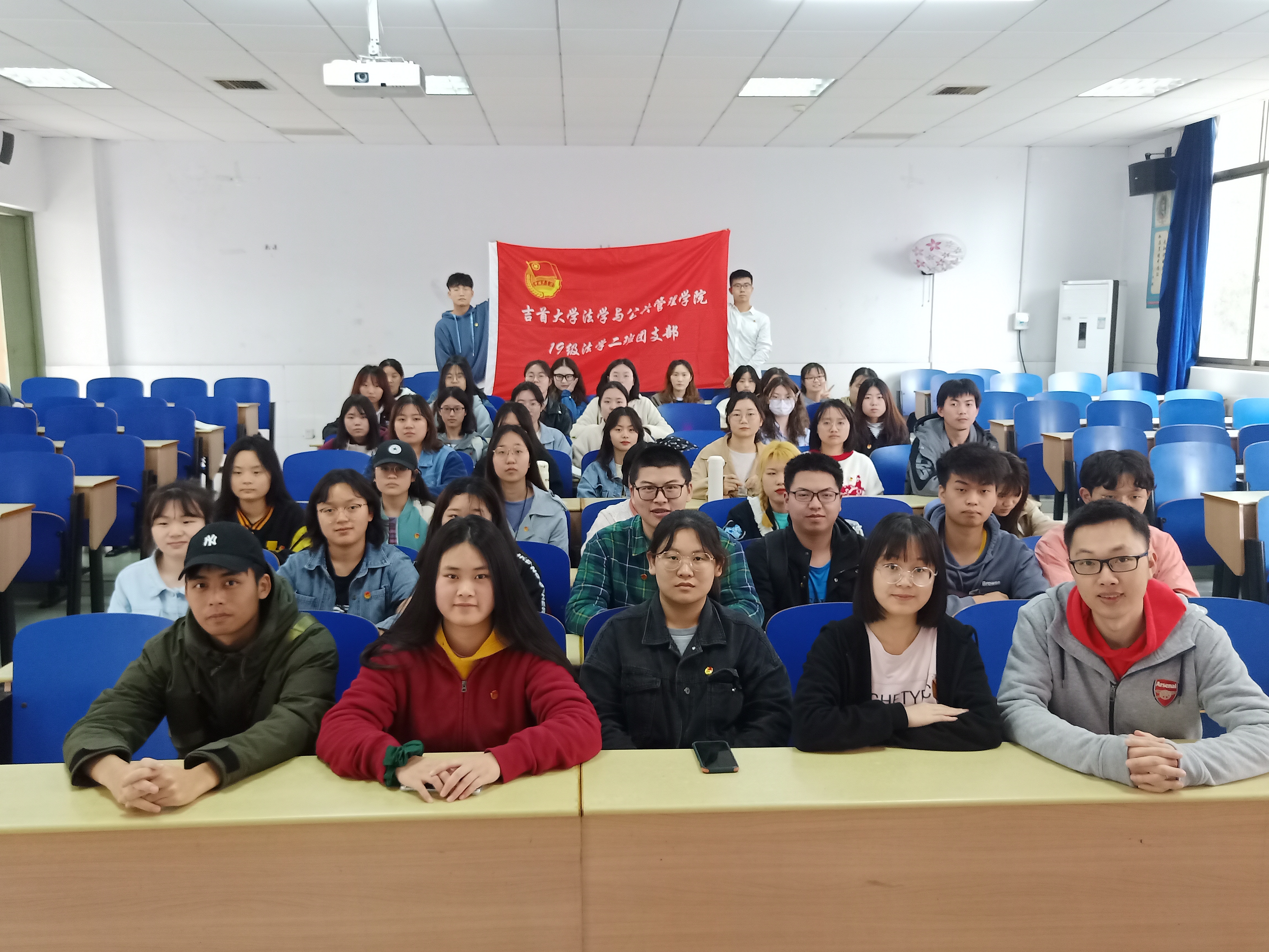 法学与公共管理学院2019级法学二班团支部是一个忠于实践、具有创新意识的集体。支部现有47名团员,其中党员7名,入党积极分子27名,支部始终遵循“实践检验真理”的原则,从活力支部、向党支部、特色支部三个方面开展团学工作,在各类实践中引导青年团干、团员以求真务实的态度,脚踏实地、苦干实干、面向实践、深入实践。支部建设充满活力,在学校先后荣获“先进班集体”、“先进团支部”“活力团支部”等荣誉称号。
