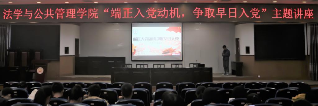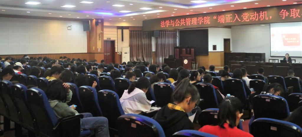 (本网讯 欧雪梅 罗慰 郭高维)为增进学生对中国共产党的了解,促使同学们形成正确的入党动机,争取早日加入党组织,11月1日,我院在模拟法庭举行“端正入党动机,争取早日入党”主题讲座。此次讲座诚邀我院党委书记彭献忠担任主讲人,我院19级全体学生参加了此次讲座。