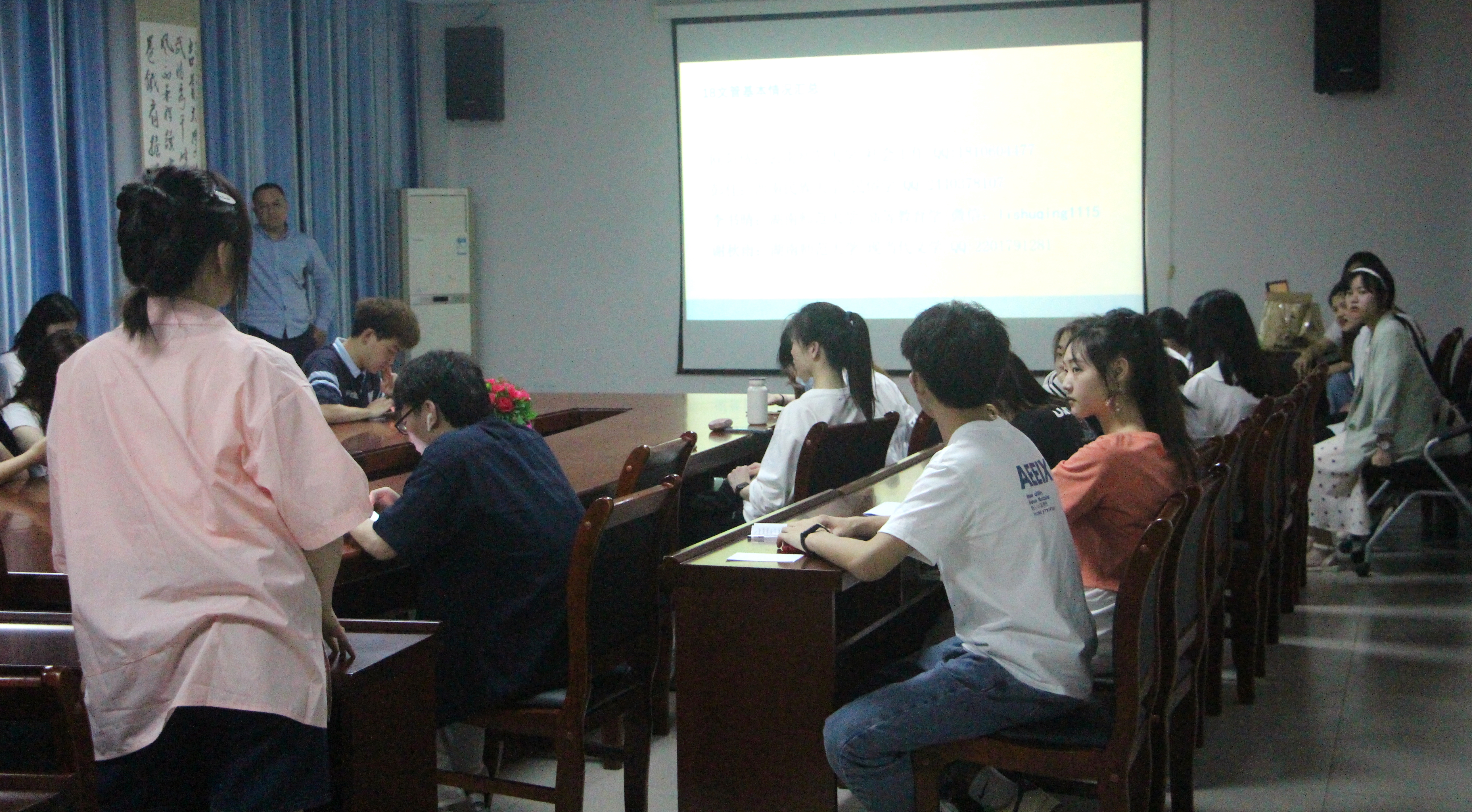 本网讯(通讯员 李露 柳盈)5月6日晚七点至九点,我院在学院会议室举办文管考研分享会。我院辅导员哈米拉提·买合木提和文管系主任王作剩受邀参加此次活动。欧阳倩、彭佳、李书晴和谢秋雨为本次考研交流会的分享人。