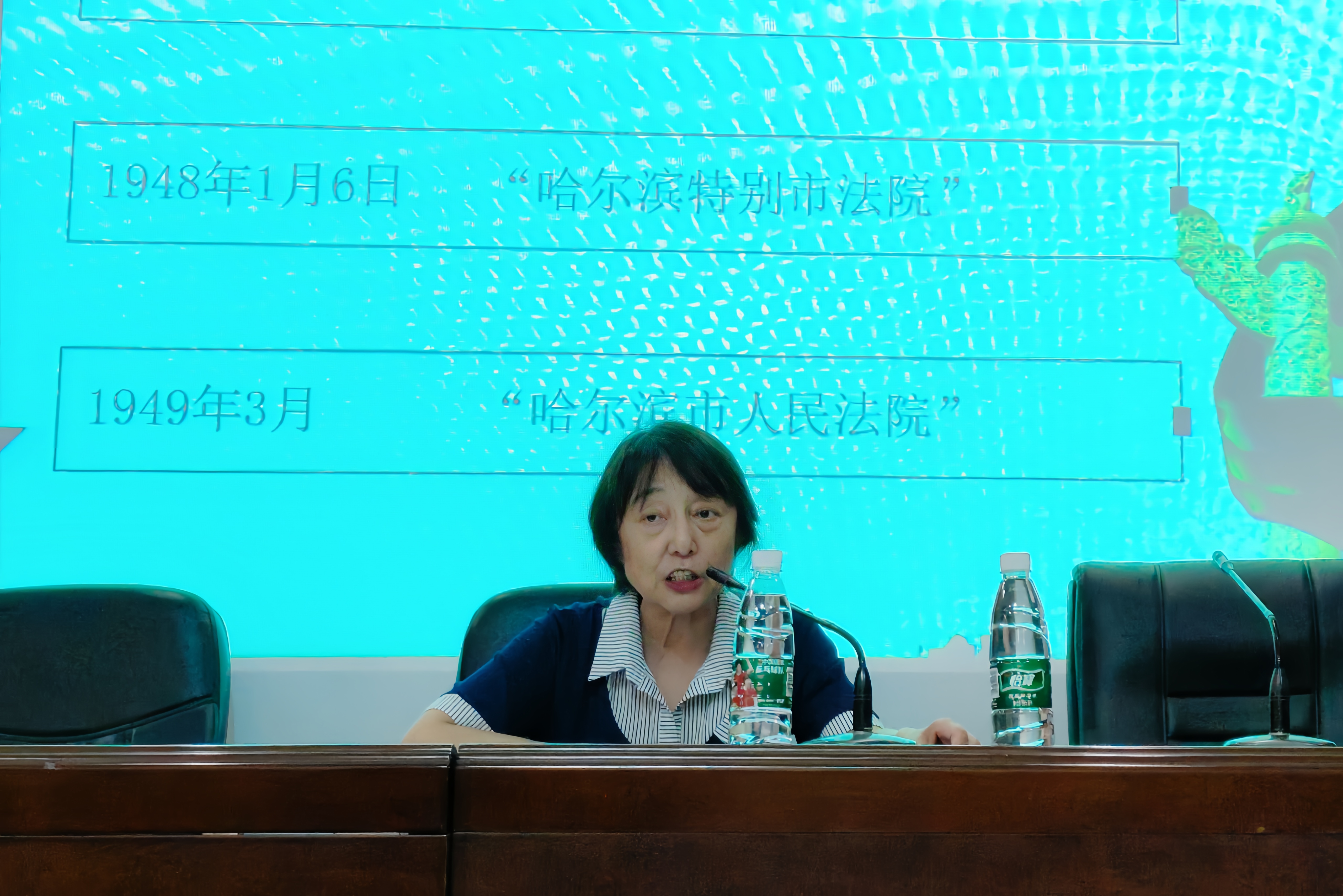 讲座内容聚焦中华优秀法治文化中包含的中国共产党革命根据地时期红色法治文化。孙光妍首先介绍了“红色司法理念”在哈尔滨解放区的传承、探索与创新中为核心的,红色革命司法传统法治的概念,并就红色法治文文化这一话题,她提出,红色法治文化的核心理念是以人民为中心,坚持党的领导,坚持实事求精神,贯彻群众路线等原则。