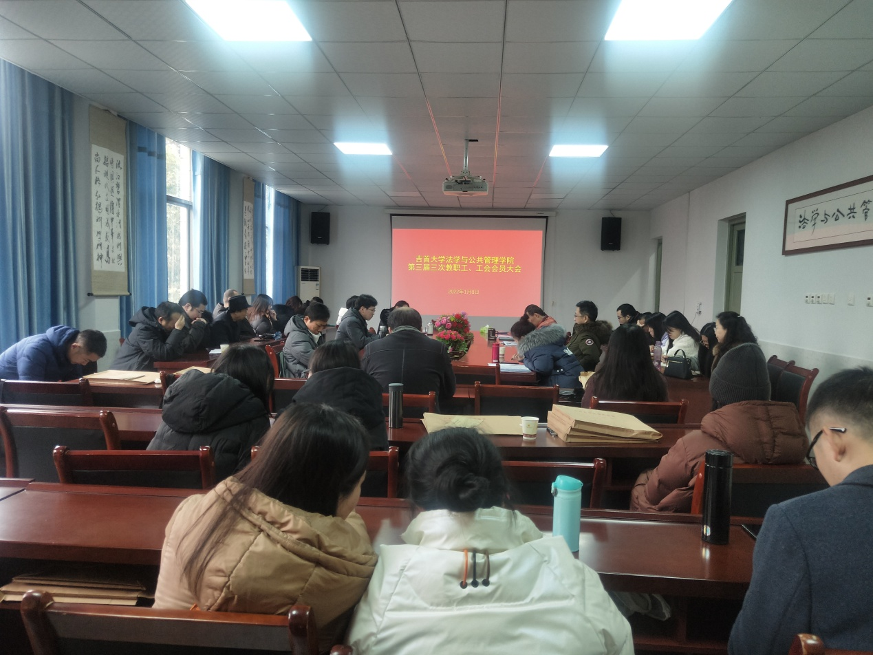 2022年1月8日上午,法学与公共管理学院在会议室召开第三届三次教职工大会,全体院领导和教职工参加了此次会议。会议由副院长魏风劲主持。