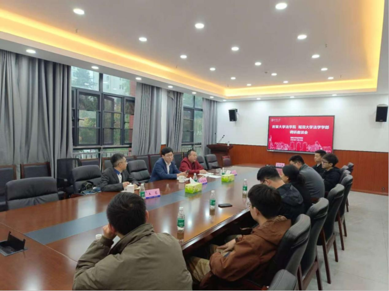 10月30日下午,郑院长一行到访湘潭大学法学部,就法学学科建设、知识产权专业发展、师资队伍培育以及博士生招聘等议题开展调研座谈。湘潭大学法学学部部长李仕春、党委书记陈双喜、知识产权学院院长肖冬梅及知识产权学科教师代表易磊、彭文波等参加座谈。会议由陈双喜主持。