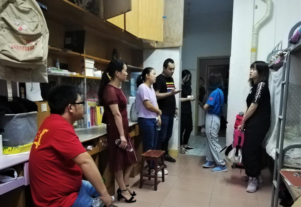 本网讯(陈睿珍 郭高维)新学期伊始,我院党委副书记陈蓉,学工办主任段武城、副主任文兰,团总支书记任倩,辅导员哈米拉提•买合木提深入我院学生寝室进行走访慰问,并就学生宿舍的安全问题进行摸底排查。
