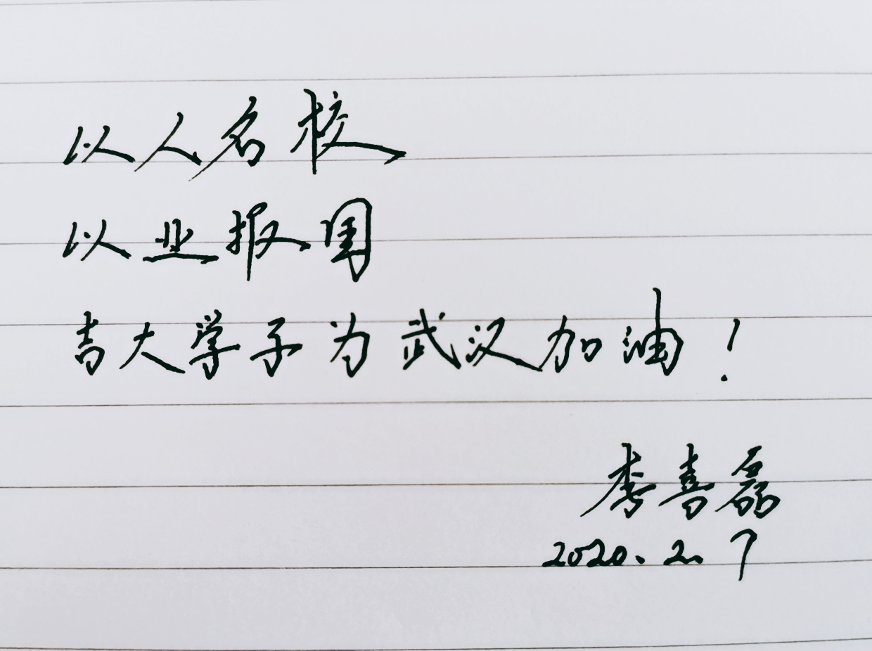 “我有很多读医学、药学的朋友,他们有的奔赴了武汉,有的奋战在家乡的医院,他们都在用他们的专业知识、尽自己的努力为社会做贡献。虽然我不是医学生,但我是一名新时代大学生,是一名共青团干部,‘党有号召,团有行动’是共青团的优良传统,面对疫情,自然要迎难而上、迅速行动,认真履行职责使命,为疫情防控工作尽一份力。”李喜磊说到。