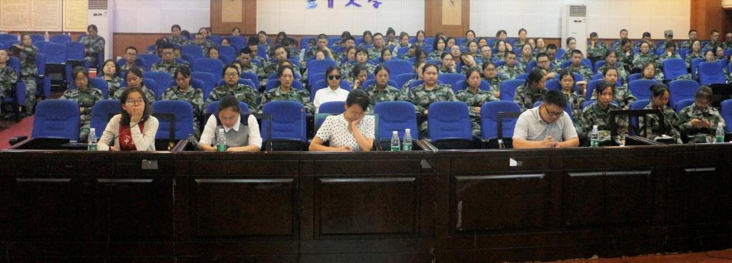 本网讯(罗慰 郭高维)为庆祝建国七十周年,进一步做好国防教育工作,激发大学生赓续红色血脉、热爱人民军队、矢志强国强军的政治热情,9月18下午,我院在模拟法庭举办“爱我国防”主题演讲比赛。我院党委副书记陈蓉、学工办主任段武城、副主任文兰、团总支书记任倩莅临比赛现场并担任评委。全体教官和19级新生观看了本次比赛。