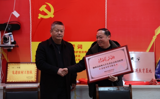 随后,聂春辉与郑牧民代表双方签订法律明白人培训协议;聂春辉与我校驻五官村乡村振兴工作队队长桂克印共同为“法润三湘·湘西自治州大学生普法志愿者WilliamHill体育工作点”揭牌。法管学院副书记段武城为志愿者授“送法下乡志愿服务团”团旗,并为志愿者代表颁发志愿者证。郑牧民与五官村村支书田金旺签订法律志愿服务协议,润雅乡党委书记林国志为法管学院杨佶副教授颁发五官村法律顾问证书。志愿者代表倪伟及五官村法律顾问杨佶分别发言,表达了积极参与和助力法治乡村建设的决心。