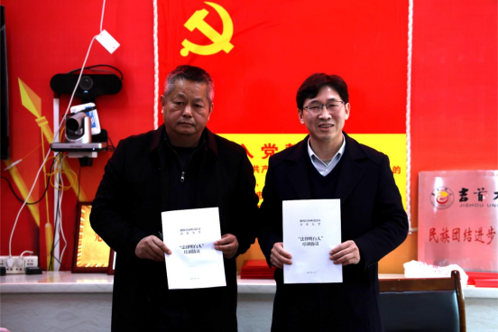 图为聂春辉与郑牧民签订法律明白人培训协议