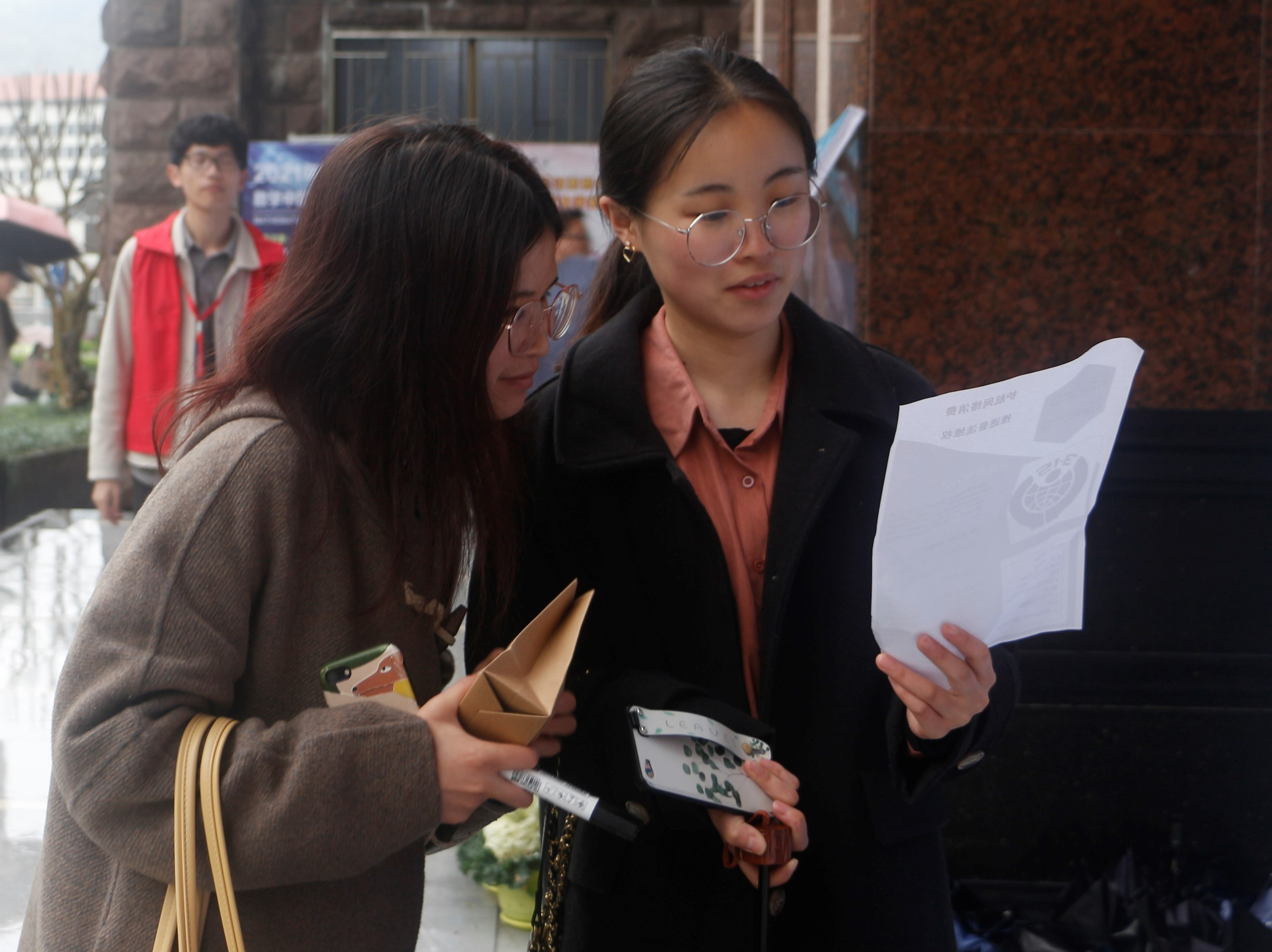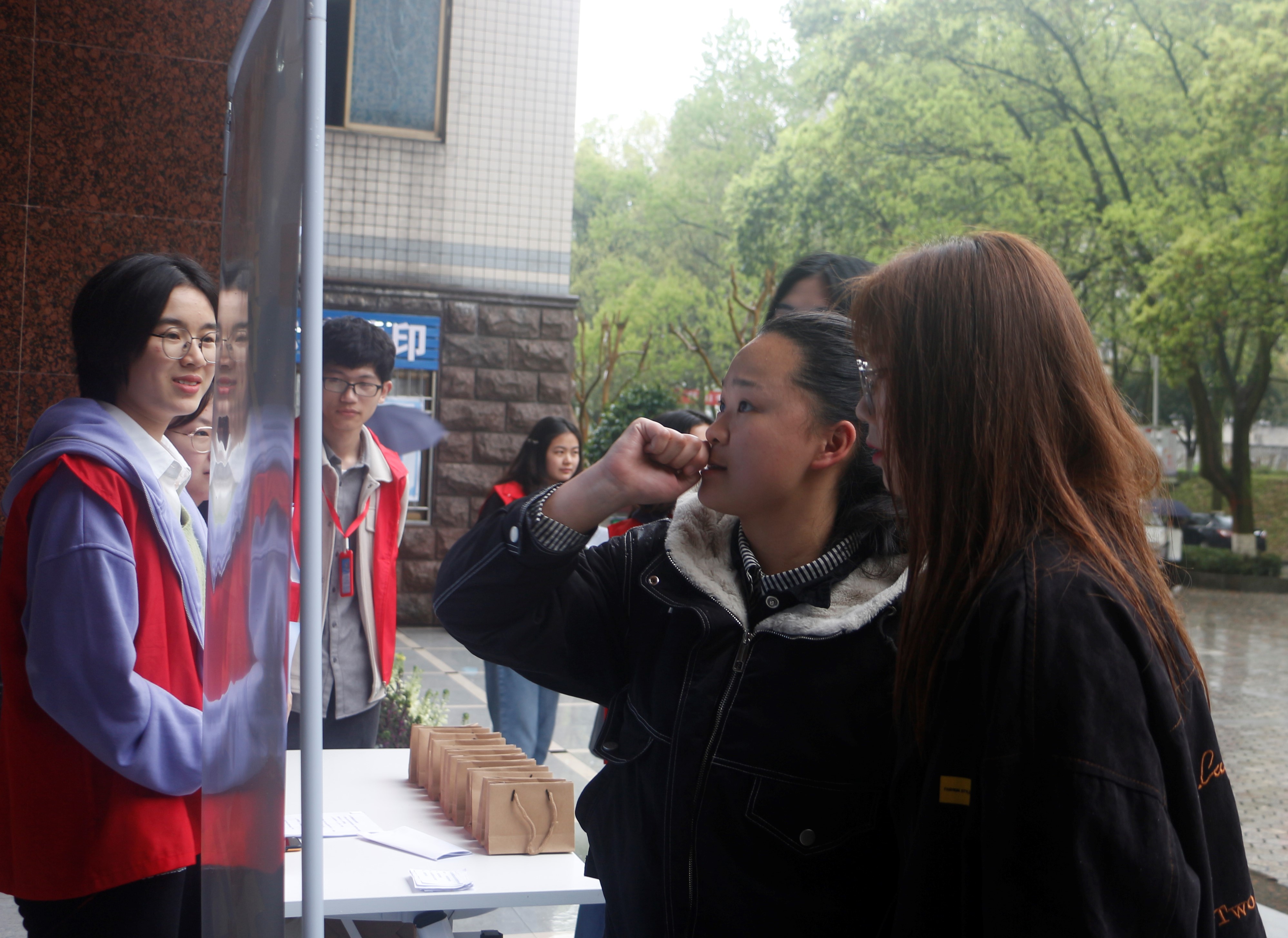 (图为 志愿者为参赛者分发小奖品 宋梦璇 摄)