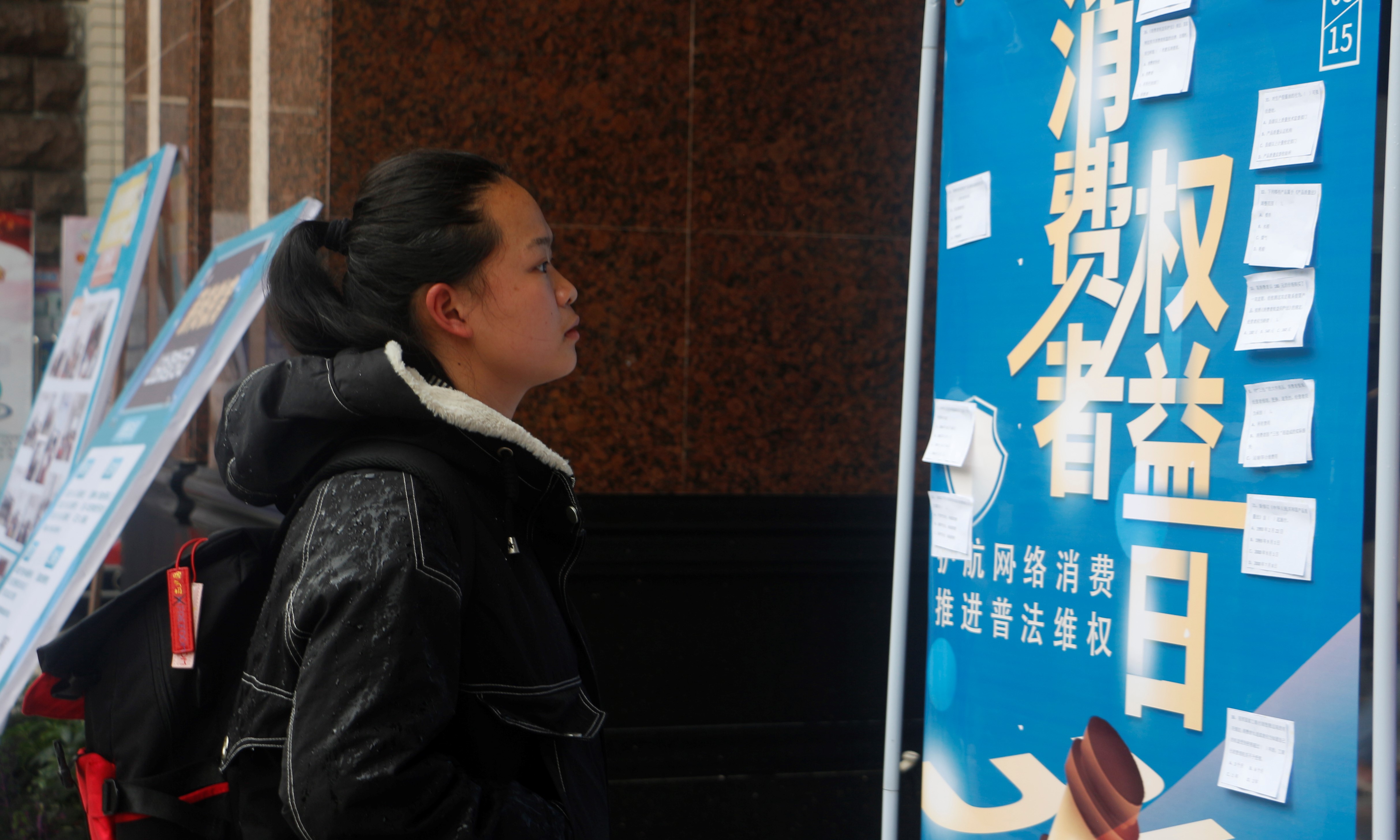 (图为 学生观看宣传海报 宋梦璇 摄)