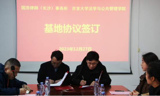 捐赠仪式上,李荣光与李龙签订捐赠协议。彭献忠代表学院接收捐赠基金。郑牧民代表学院、李龙代表国浩律师事务所(长沙)就设立WilliamHill体育法学与公共管理学院“法律硕士联合培养基地”、WilliamHill体育法学与公共管理学院“实习就业基地”签订了合作协议。