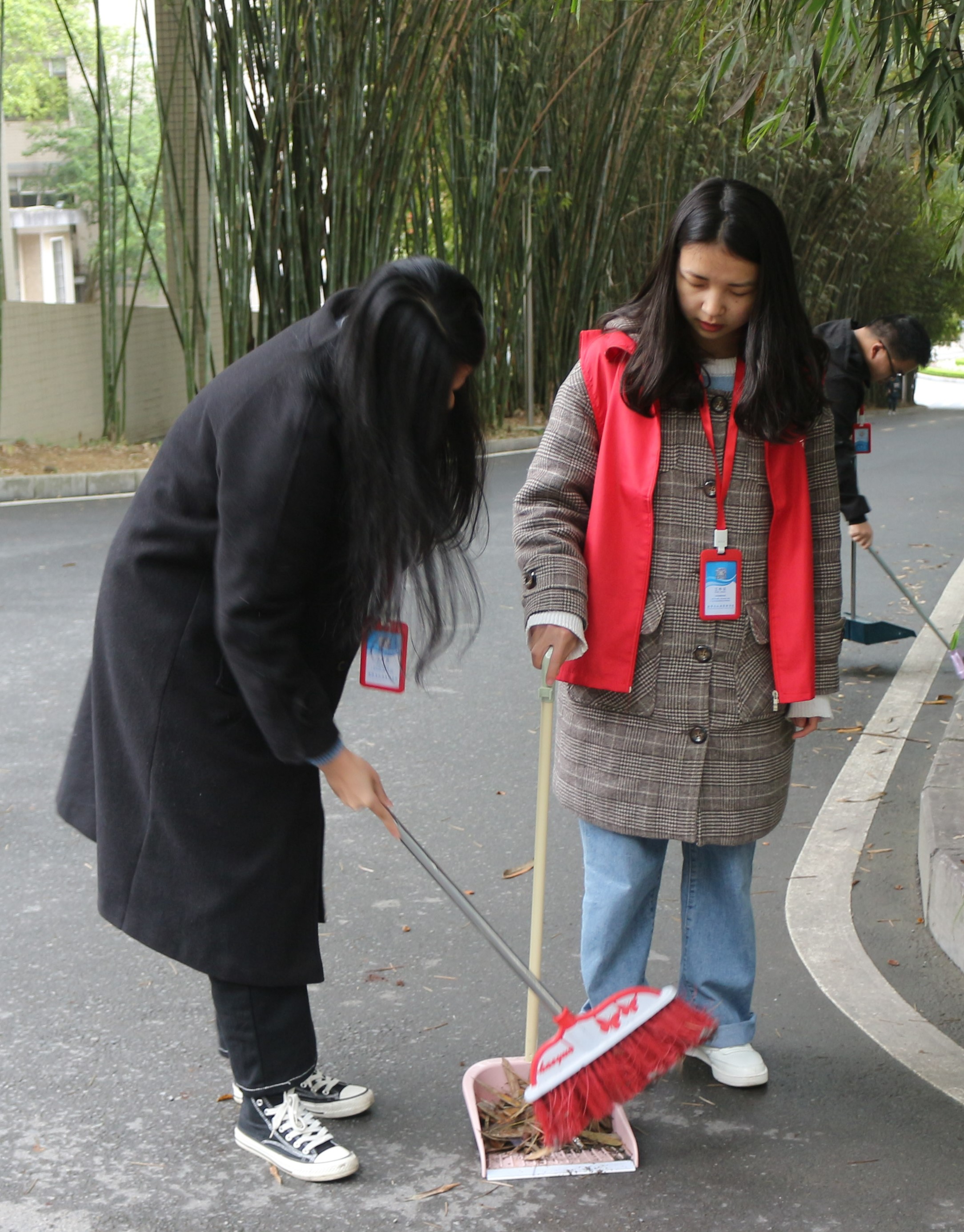 (图为 志愿者清扫校园道路 宋梦璇 摄)