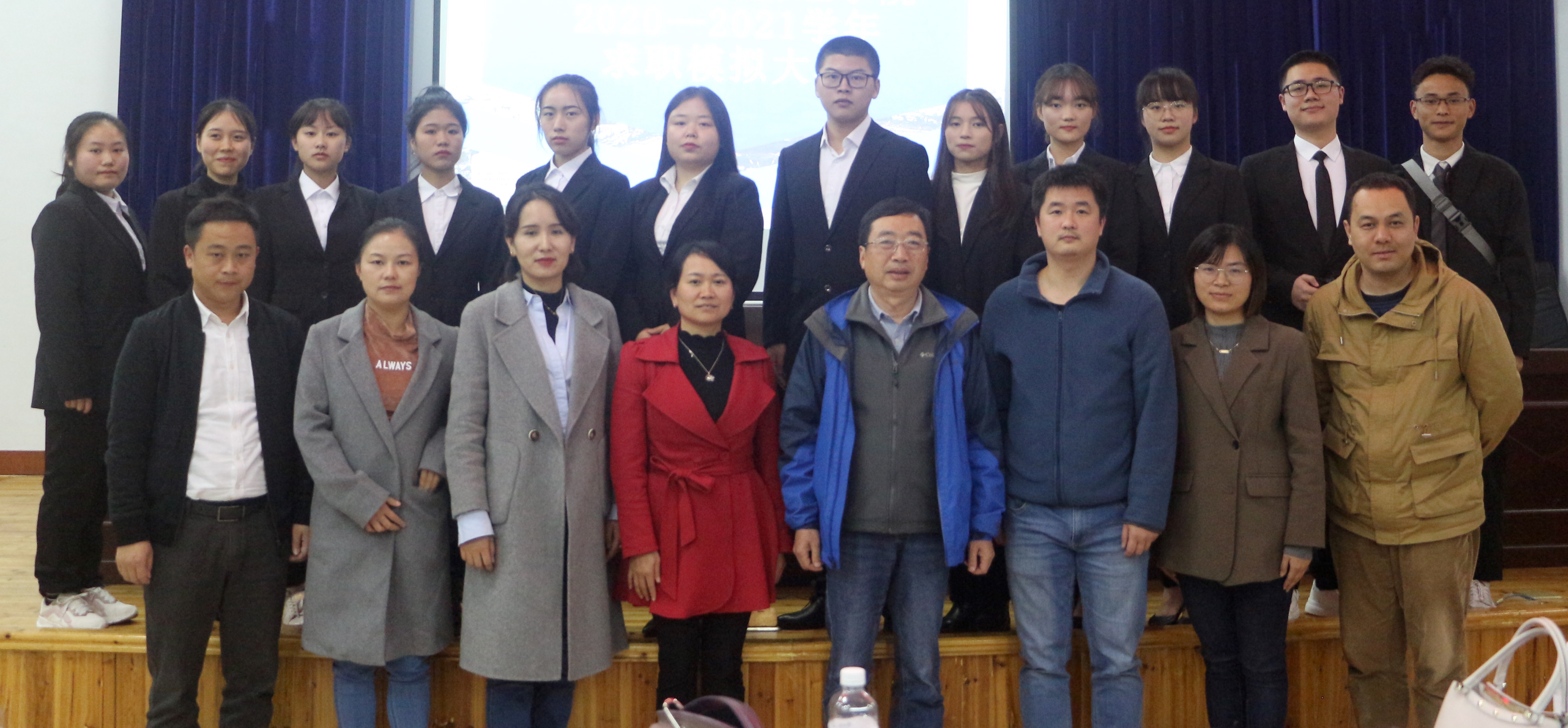 本网讯(通讯员 吕婉琴 郭丽)为增加我院学生求职经验,模拟求职面试,11月20日晚,我院在老年活动中心举行了求职模拟大赛,我院党委书记彭献忠、副书记陈蓉,组织部吴岳衡、学工部米克然依、药学院彭俊、商学院邹欢等老师出席了大赛,各班学生列席观赛。
