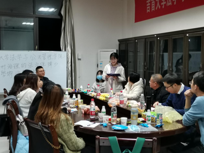 2021年11月17日晚,法管学院第一期学术沙龙在大田湾校区预科楼7楼708教室成功举办。本次沙龙由法管学院研究生会主办,由2021级四位研究生同学主讲,主题是乡村治理的法治保障,特邀请到张登巧院长、教授;戴小冬副教授;林旭鑫博士作为本次沙龙的指导老师,我院以及慕名而来的外院20多名研究生参加此次学术交流活动。本次沙龙由陈颖同学主持。